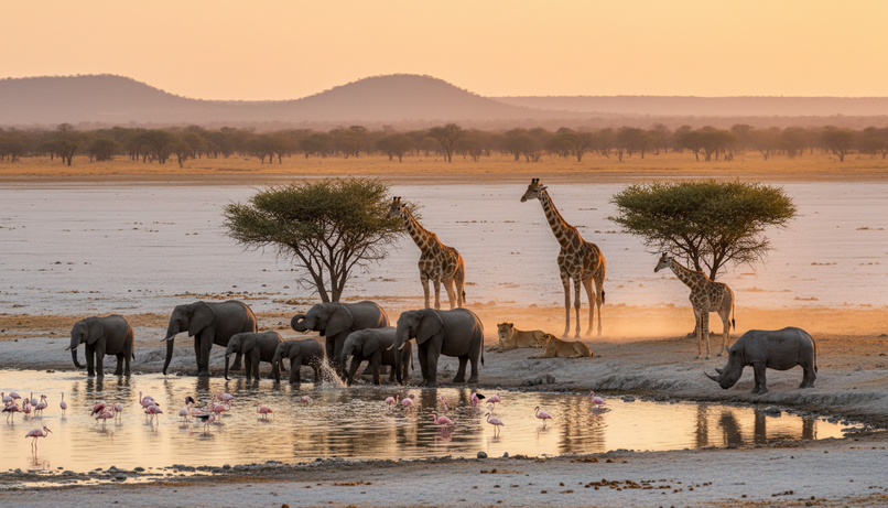 Atlas Okyanusu kıyıları boyunca uzanan Skeleton Sahili, terk edilmiş gemi enkazları ve çarpıcı manzaralarıyla büyüler. Vahşi yaşamı keşfetmek isteyenler için Etosha Ulusal Parkı, aslanlardan fil ve zürafalara kadar Afrika’nın büyük beşlisini görme fırsatı sunar. Daha fazlasını öğrenmek için Gezilecek Yerler sayfasına göz atabilirsiniz.